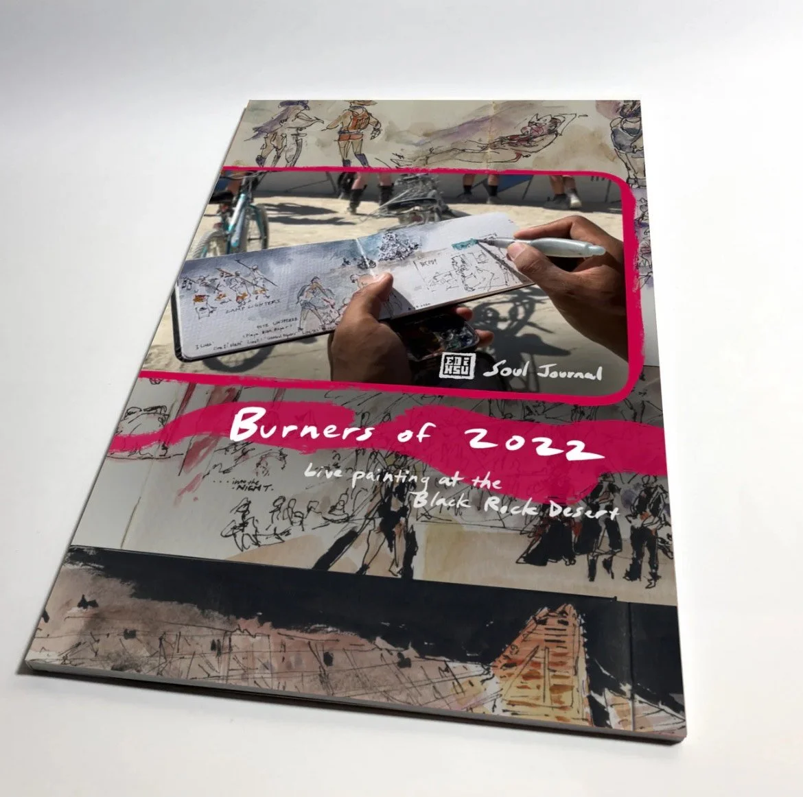 Printed Books of Travel journals live-painted at Burning Man. - 9” x 5” Softbound